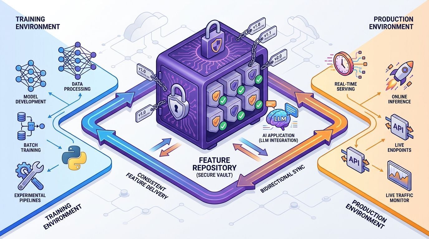 O Feast representa uma abordagem diferente: em vez de focar na criação de features, ele atua como um feature store open-source, garantindo que features estruturadas sejam entregues de forma consistente para aplicações de IA em produção.