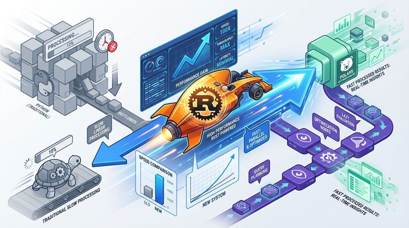 Muitos consideram Polars como a versão de alta performance do Pandas. Se você já domina Pandas, a curva de aprendizado é mínima, mas os ganhos de performance podem ser extraordinários.