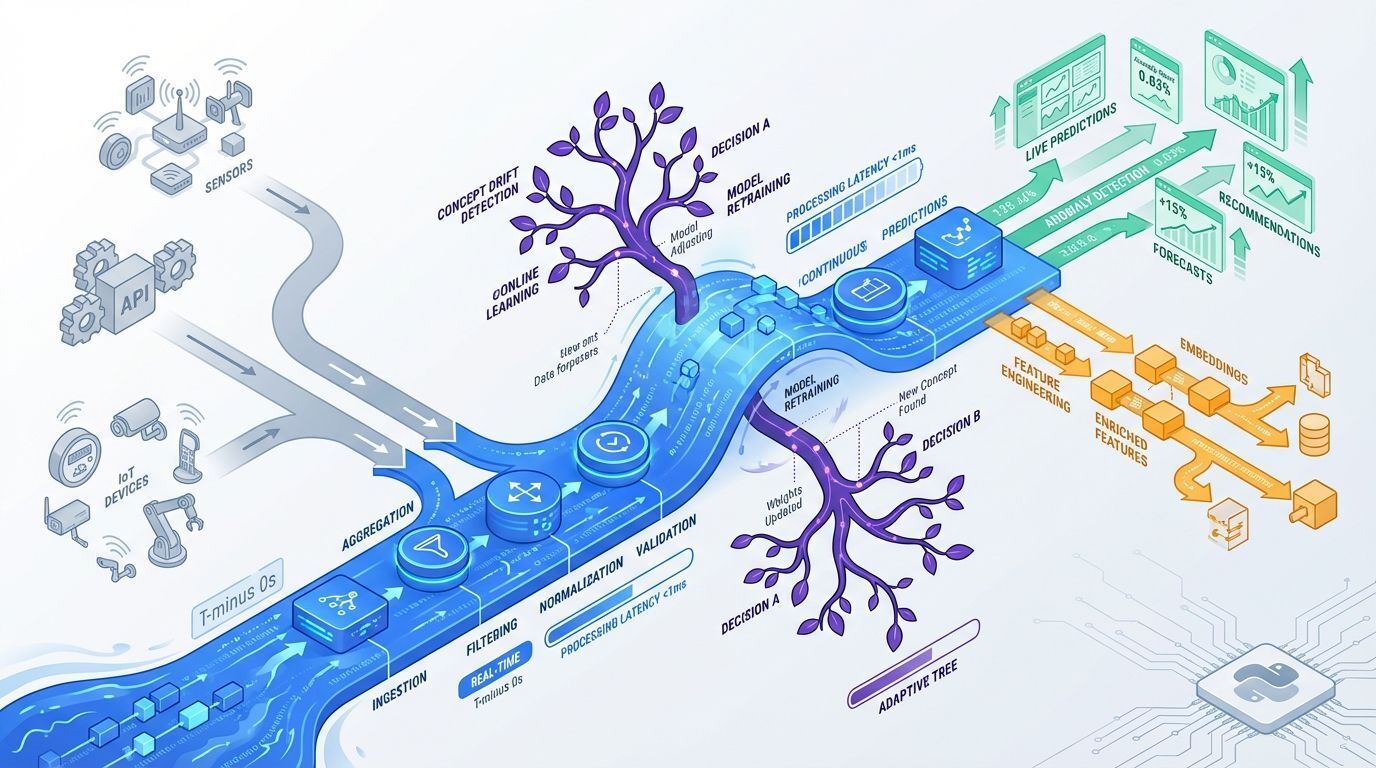 O diferencial está em sua robustez para lidar com desafios raramente abordados em sistemas batch tradicionais, como concept drift e features que aparecem ou desaparecem ao longo do tempo.