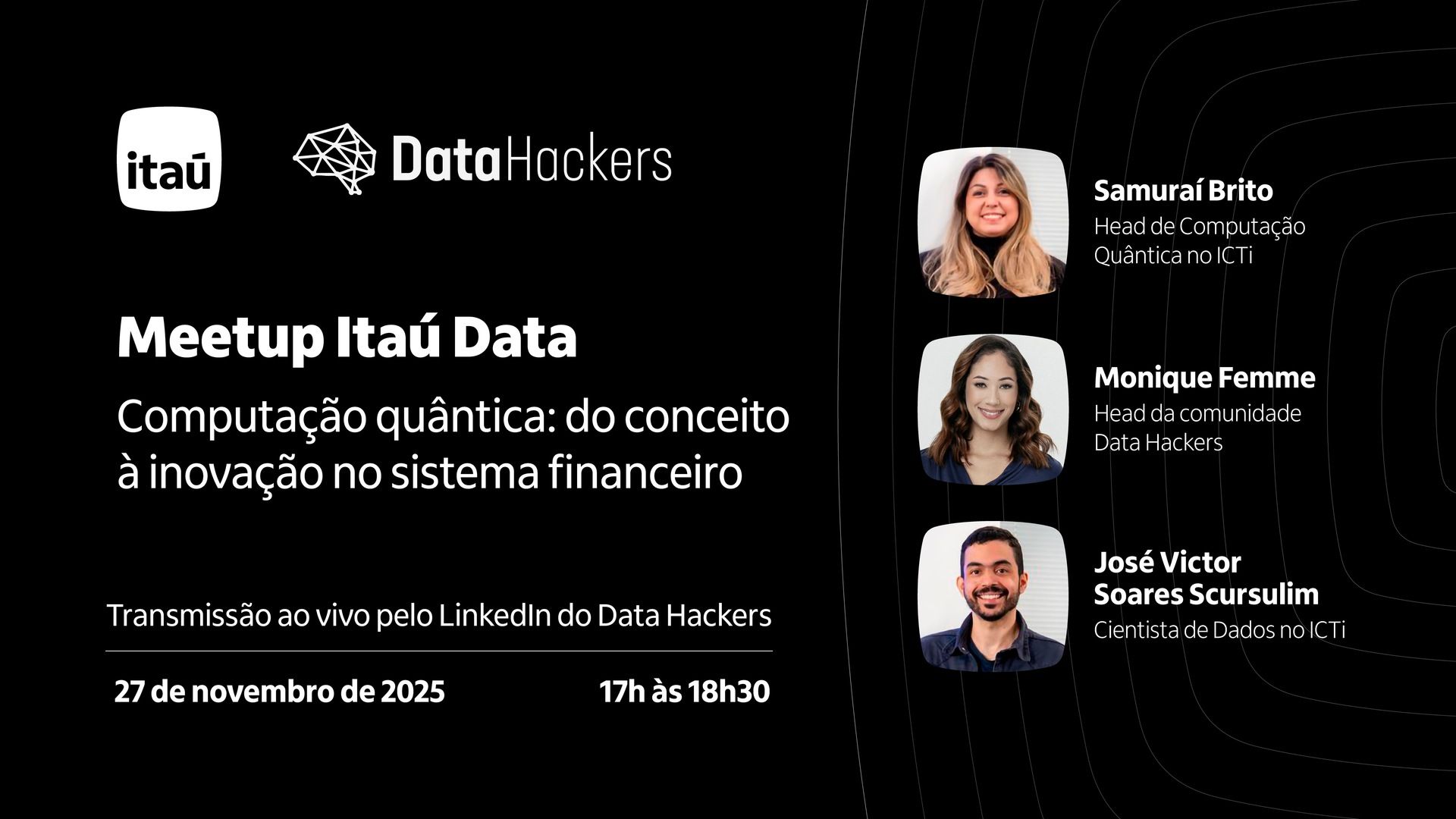 No dia 27/11, o Data Hackers recebe dois dos principais nomes do Itaú e do ICTi para discutir computação quântica aplicada ao setor financeiro.