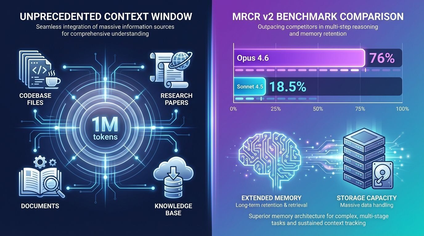 Pela primeira vez em um modelo classe Opus, a Anthropic disponibiliza uma janela de contexto de 1 milhão de tokens. Isso significa que desenvolvedores podem trabalhar com: