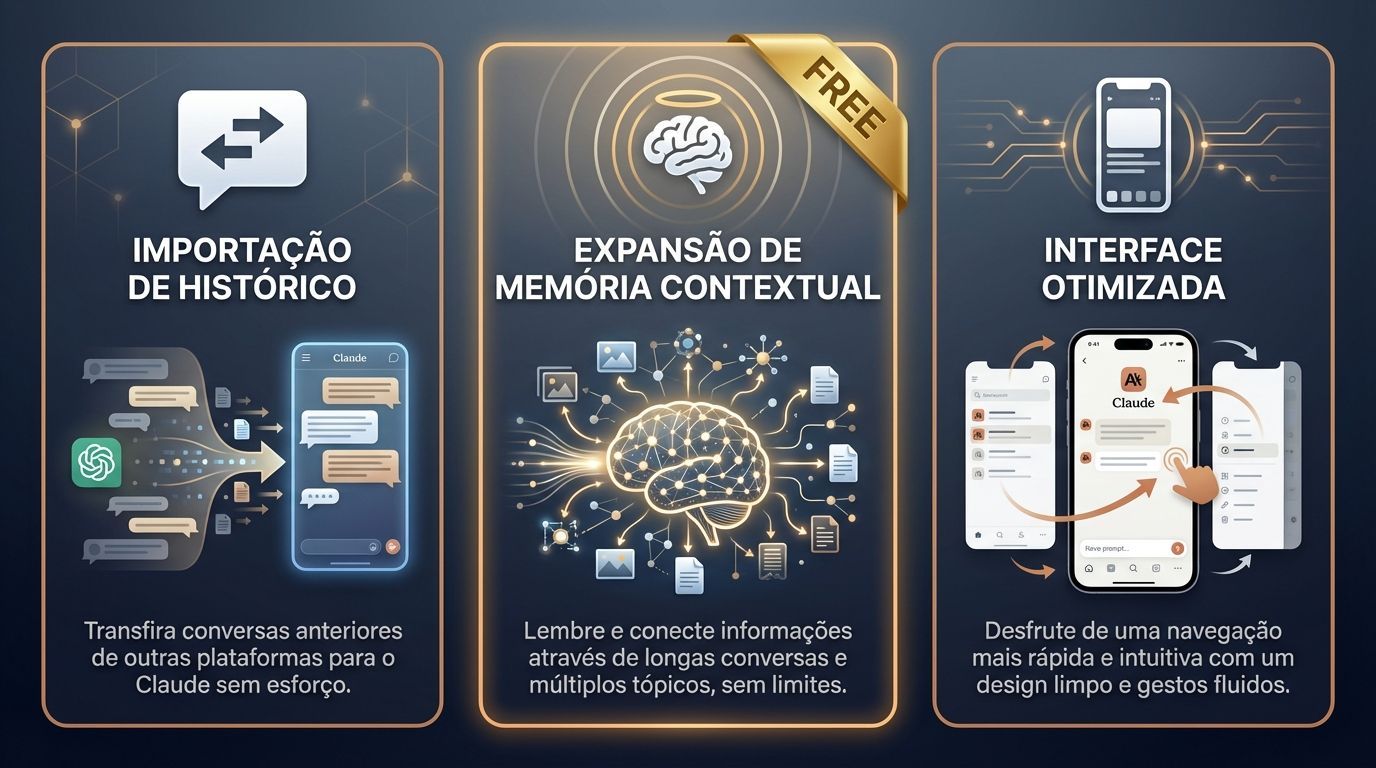 Expansão de memória contextual | Disponível agora para usuários do plano gratuito | Democratiza recursos antes restritos a assinantes |