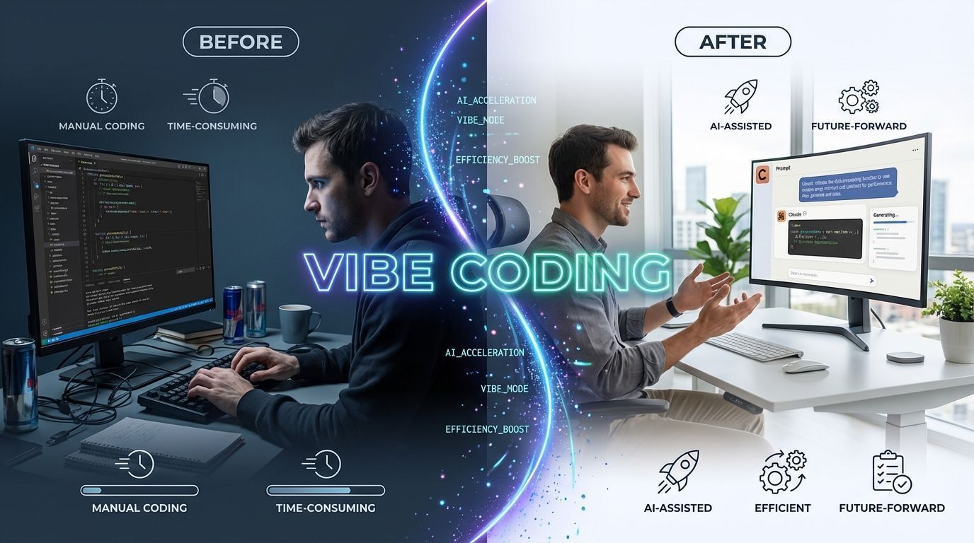 Vibe coding é um termo criado por Andrej Karpathy para descrever a programação guiada por instruções em linguagem natural, onde desenvolvedores expressam suas intenções e a IA traduz isso em código funcional.