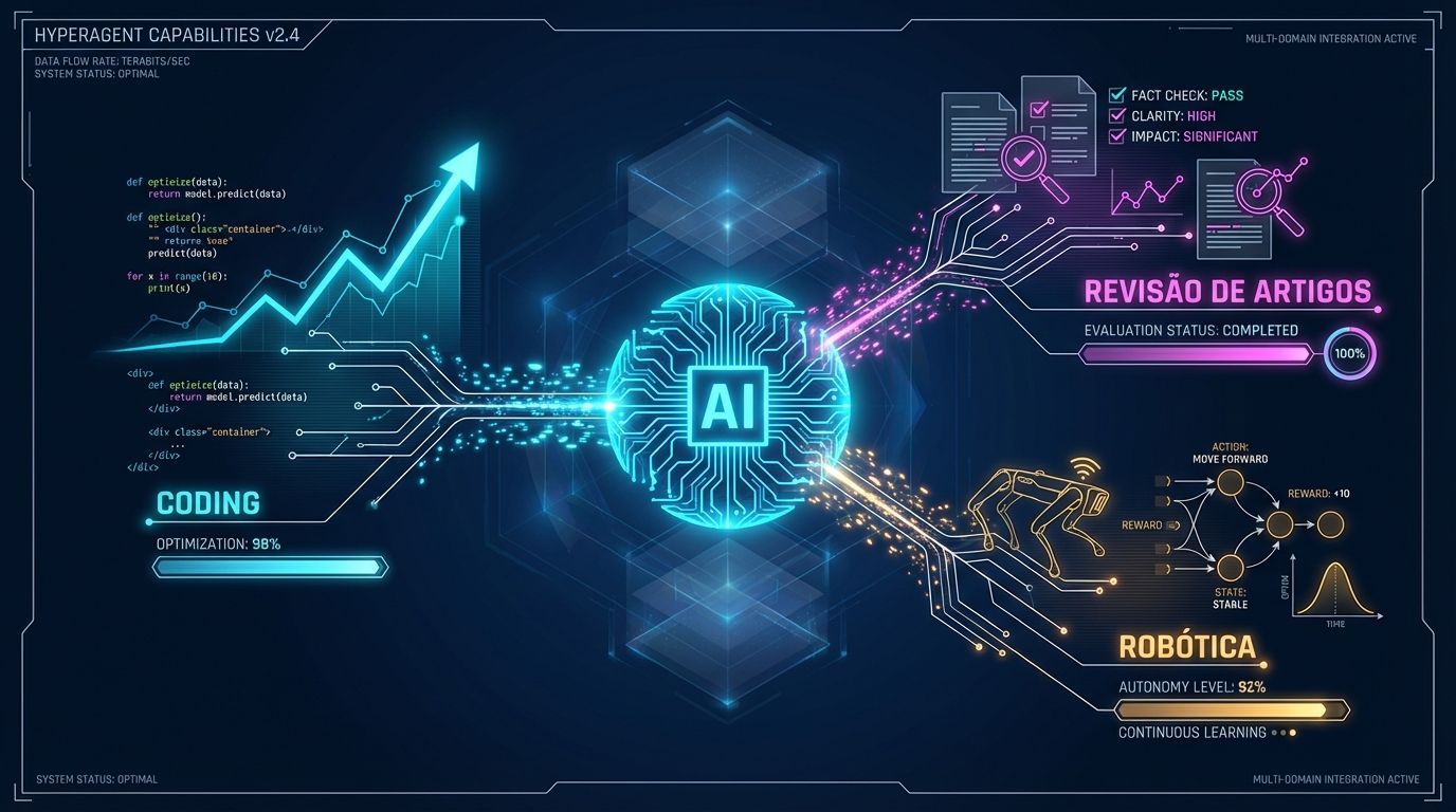 Para superar as limitações das arquiteturas anteriores, os pesquisadores introduziram os hyperagents. O framework propõe "agentes auto-referenciais que podem, em princípio, se auto-aprimorar para qualquer tarefa computável."