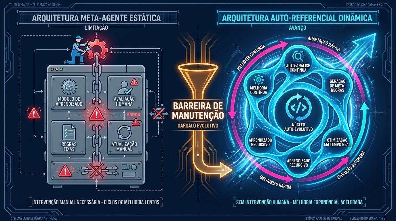 O objetivo central dos sistemas de IA auto-aprimorável é melhorar continuamente suas próprias capacidades de aprendizado e resolução de problemas. No entanto, a maioria dos modelos existentes de auto-aperfeiçoamento depende de um "meta-agente" fixo — um sistema supervisor estático de alto nível projetado para modificar um sistema base.