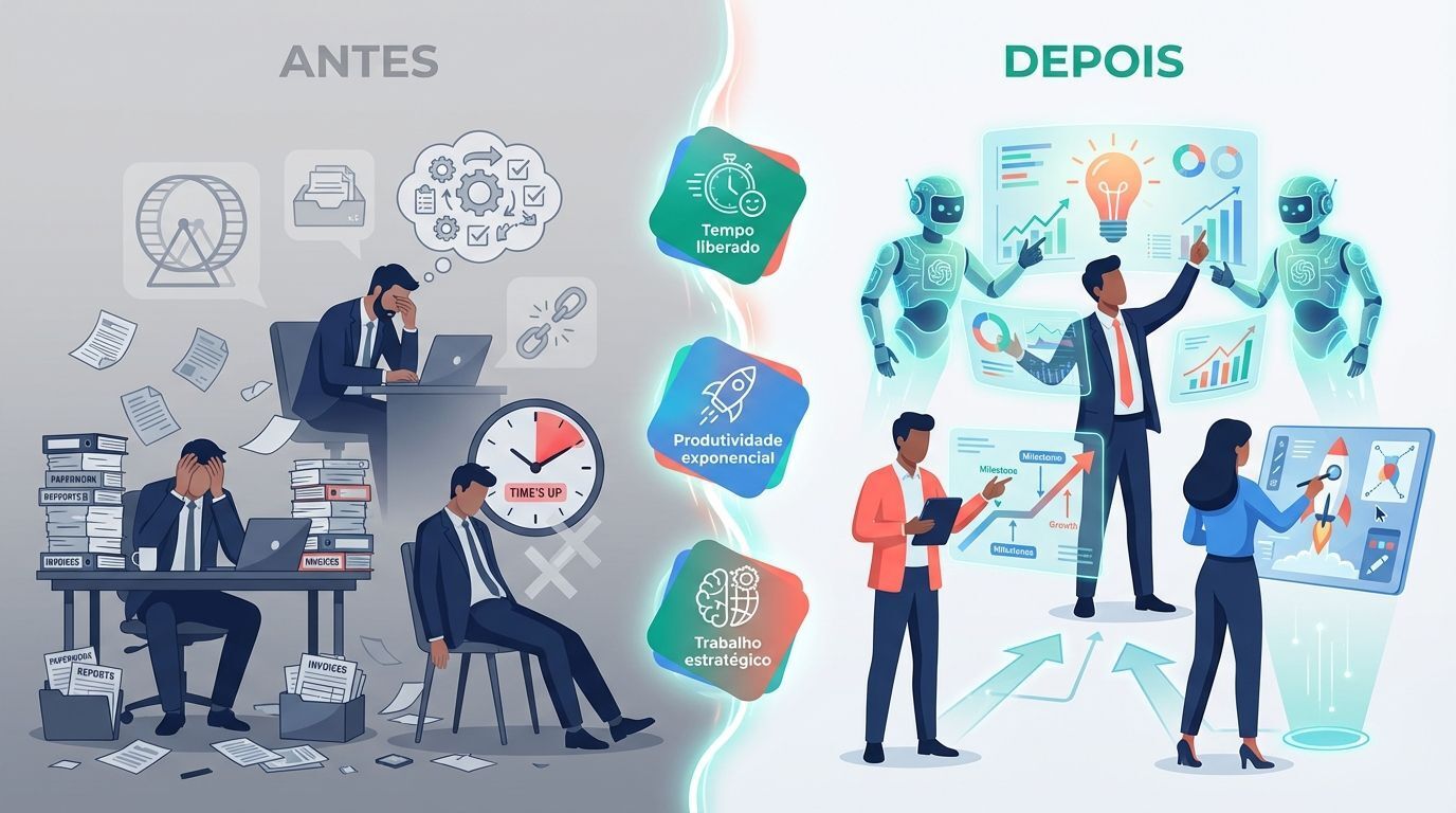 A promessa não é eliminar departamentos, mas multiplicar a capacidade produtiva das equipes existentes.