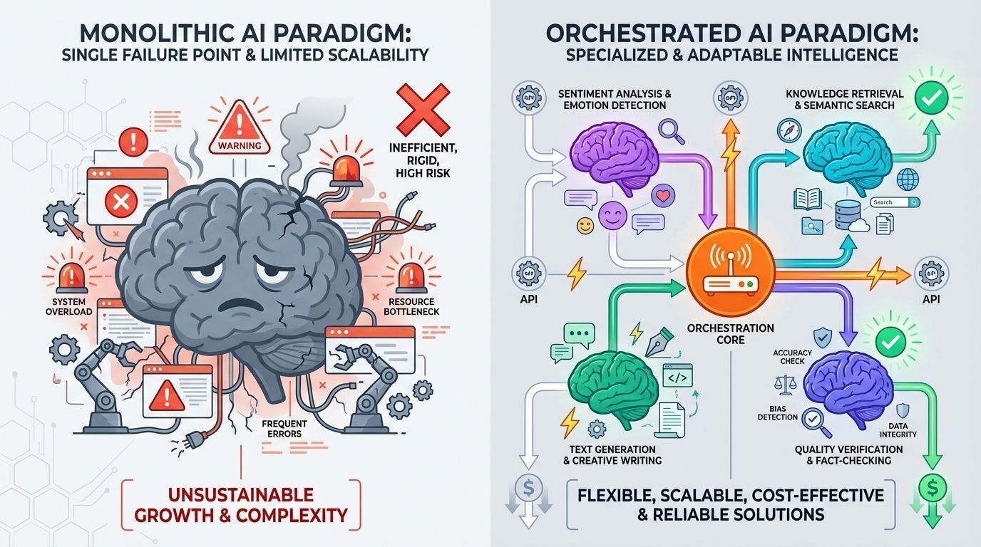 O sonho de um único modelo de IA todo-poderoso é atraente. Uma chamada de API, uma resposta, uma conta. Mas a realidade tem se mostrado mais complexa.