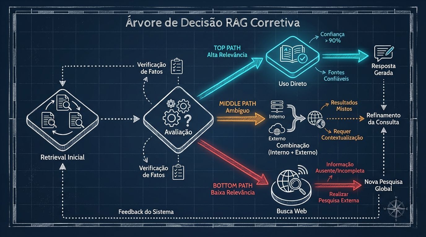 CRAG assume que o retrieval pode estar errado e adiciona mecanismos de correção:
